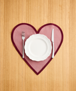 Pink Clay & Mulberry 100% French Flax Linen Heart Placemats (Set of Two)