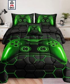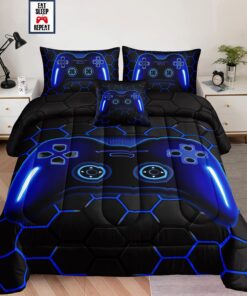 Gaming Bedding Set Twin Size Gamer Comforter Set for Boys Girls Kids Teens So…