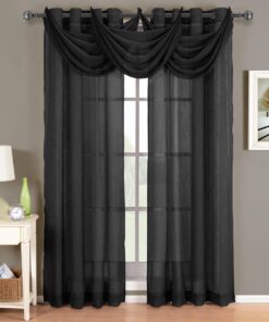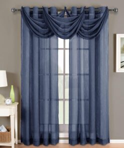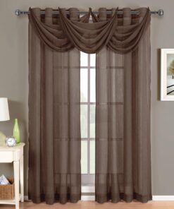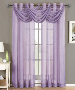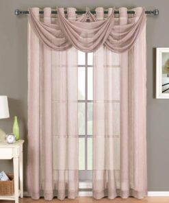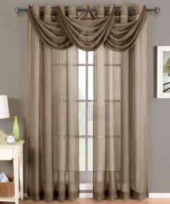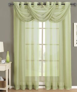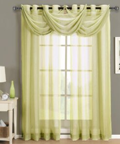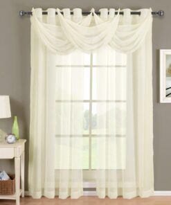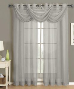 Add an opulent and deluxe look to almost any room in the house with these Grommet Sheer Curtain Panels. with several different sizes available. these curtains accommodate a variety of window types. Select from seven delightful colors available that perfectly complement any room. Have an informal appearance with the panels only or add more elegance with one or more waterfall valances.  Add the valance scarf to complete the look. See-through and delicate. the Abripedic Grommet Crushed Sheer Curtain Panel looks dreamy blowing in the breeze. These long. sheer curtains can be hung alone or under solid drapes.Â