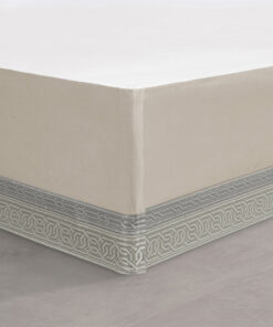 Modern quilted engineering gives the Alaro Comforter Set a luxurious multi-textural appearance. The shimmering spa. silver. and gold fabric is embossed with inlaid techniques. combined with a bordered bed runner with harmonious geometric patterns to create a unique layered illusion. The tailored bed skirt features a split-corner construction and the pillow shams are meticulously cut and sewn. positioning the pattern perfectly in the center. Pair this bedding collection with the Alaro throw pillows. Euros. and window treatments for a complete look.