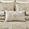 The Amaretto Tufted Round Pillow features a woven jacquard fabric with a golden medallion embroidery to create a one of a kind accent to this bedding ensemble. These unique pillows are hand tufted and are finished with pleats along the gusset.