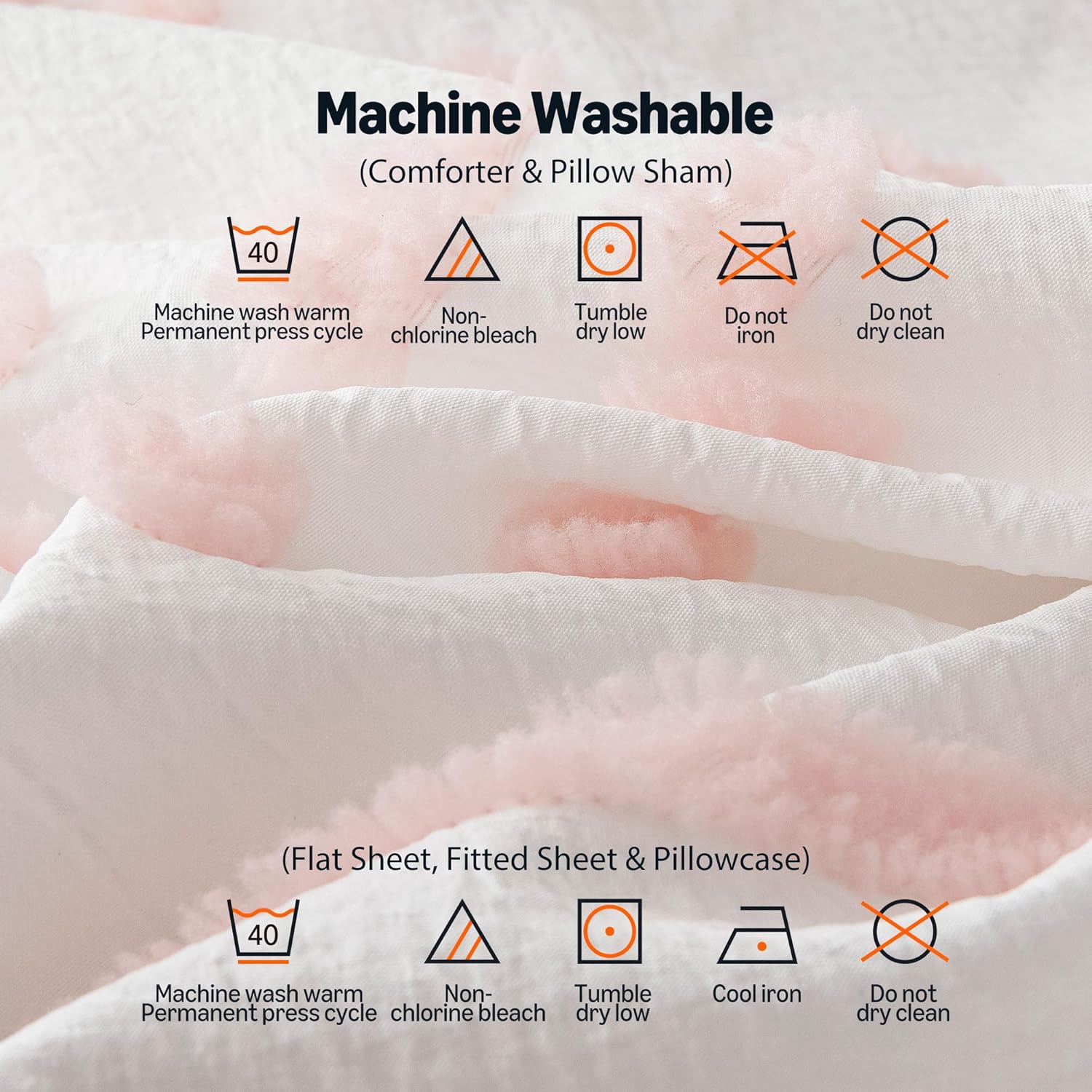 Amazon Basics 7-Piece Kids’ Bed-in-a-Bag, Jacquard Microfiber Bedding Set with Comforter, Sheets, Pillowcases and Pillow Covers, All-Season, Pink Tufted, Full/Queen