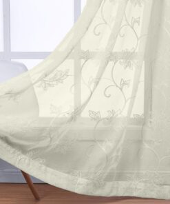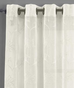 The Andora Sheer Curtains offer a soft filter from the sun. creating a pleasant ambiance and glow. Beautifully embroidered detailing and grommet rings for easy installation. Wide 54-inch panels with a full range of lengths. suitable for most window types.