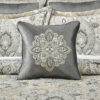Inspired by timeless elegance. the Annabelle 18 Decorative Throw Pillow features a classic damask border pattern. which incorporates a unique weave technique giving the fabric added dimension. A tufted button with a dyed-to-match silver velvet fabric finishes the lofty throw pillow. This luxurious accent pillow is recommended to add as the finishing touch to the Annabelle bedding set.