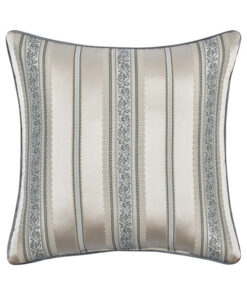 The Annabelle 20 Inch Throw Pillow features an elegant woven damask design in a stunning spa blue. gold. silver. and ivory colorway. This lovely accent pillow reverses to a woven vertical stripe for added decor versatility. finished with a velvet cord. which coordinates with the Annabelle Bedding collection.