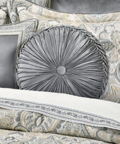 The Annabelle Tufted Round Pillow uses a soft silver velvet fabric to create a one of a kind accent to this bedding ensemble. These unique pillows are hand tufted and are finished with a fabric button accent on both sides.