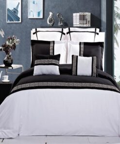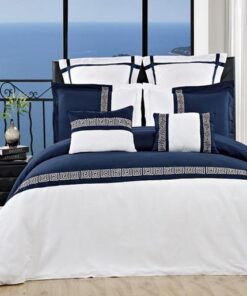 Give your bed a simple. clean look with the Astrid Embroidered 7-Piece Duvet Cover Set. Grecian-inspired with detailed Greek Key embroidery. setting the perfect ambiance for relaxation. and transforming your room into a coastal getaway in Santorini. It’s ultra soft and easy to care for made of 100% Microfiber.