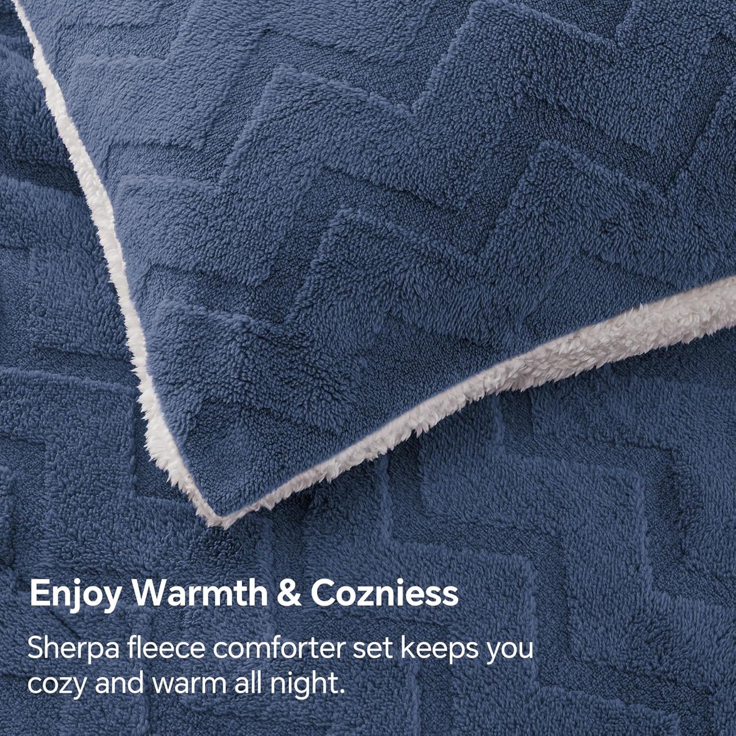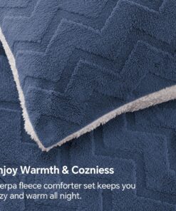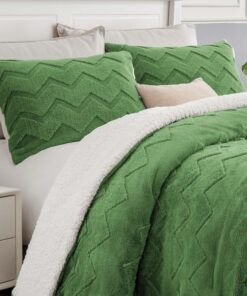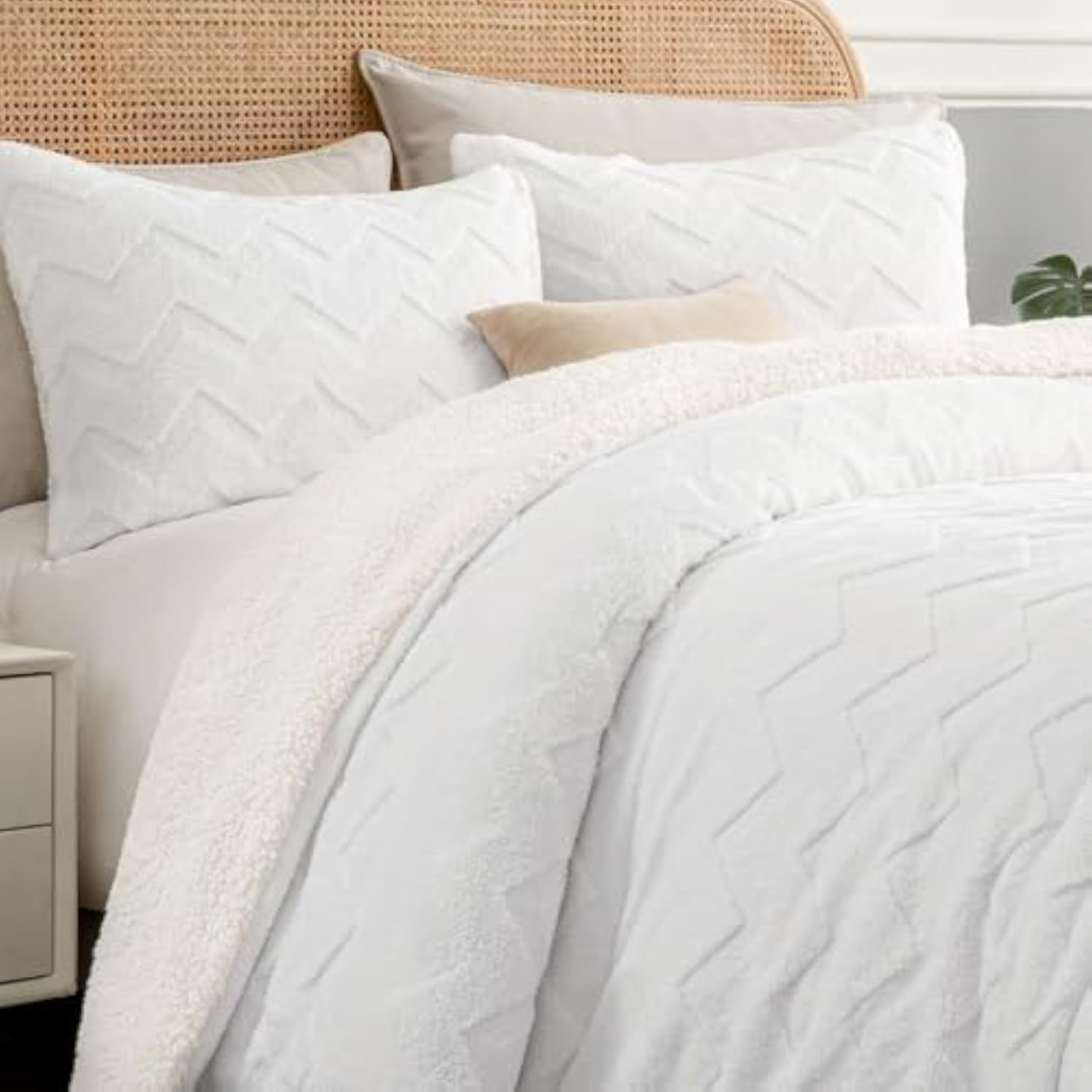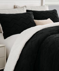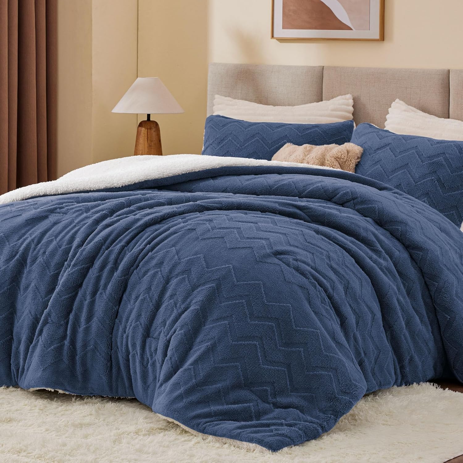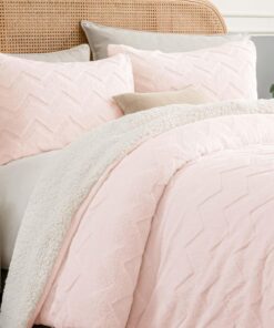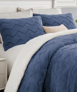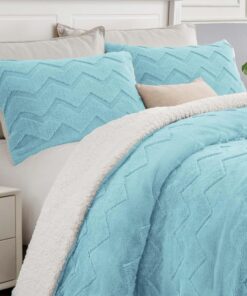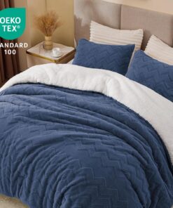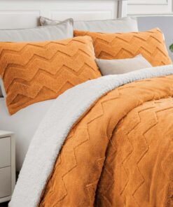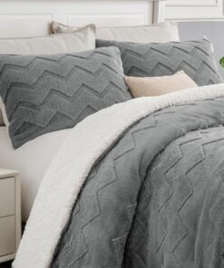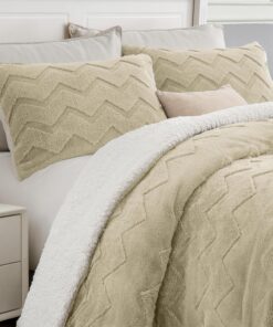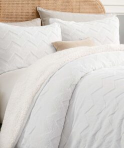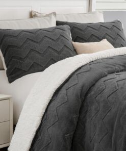 The front of the 100% polyester comforter cover set is made of shaggy Sherpa fabric.