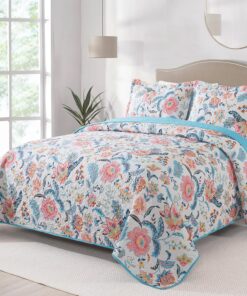 SKU: 10185509962003-bedifany-cotton-king-size-quilt-sets-lightweight-king-quilt-bedding-set-98-x-106-inch-garden-style-floral-bedspread-king-size-coverlet-set-for-bed-decorations-all-seasons-3-pieces Category: