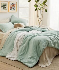 Sage Green Comforter & Pillowshams , Beige Sheets & Pillowcases