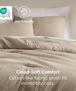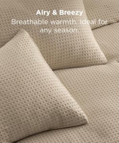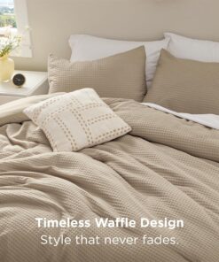 Bedsure Waffle Comforter Set Queen, Soft and Breathable Khaki Bedding Comforter Set, 3 Pieces, 1 Waffle Weave Comforter (90″ x 90″) and 2 Pillowcases(20″ x 26″)