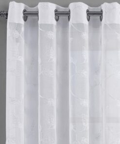 Update the look of any window or any room with our Brook Embroidered Grommet top sheer curtain set. This curtain set features 2 full-width panels at 54 inches each and a modern all-over embroidery with top grommet rings. Available in a full range of lengths this window treatment will surely add freshness and update to any room.