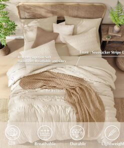Combining fluffy and distinctive seersucker pleating technique with a striped pattern.