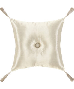 The Celine 18 Inch Throw Pillow is intricately designed with a woven diamond textured fabric in a shimmering champagne tone. The pillow features a deeply tufted button on the face & reverse. and is finished with a tassel trim. Add the Celine comforter set and window collection to complete the look.