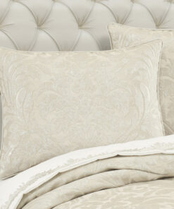 Indulge in luxury with the Celine Comforter Set. a sophisticated blend of elegance and comfort. Featuring a damask pattern woven in our signature puff construction in a soft ivory and champagne hue. shimmering with a subtle sheen. Also included in the set is a split-corner bedskirt and two pillow shams that are meticulously cut and sewn. positioning the pattern perfectly in the center. Pair this bedding collection with the Celine throw pillows. Euros. and window treatments for a complete look.