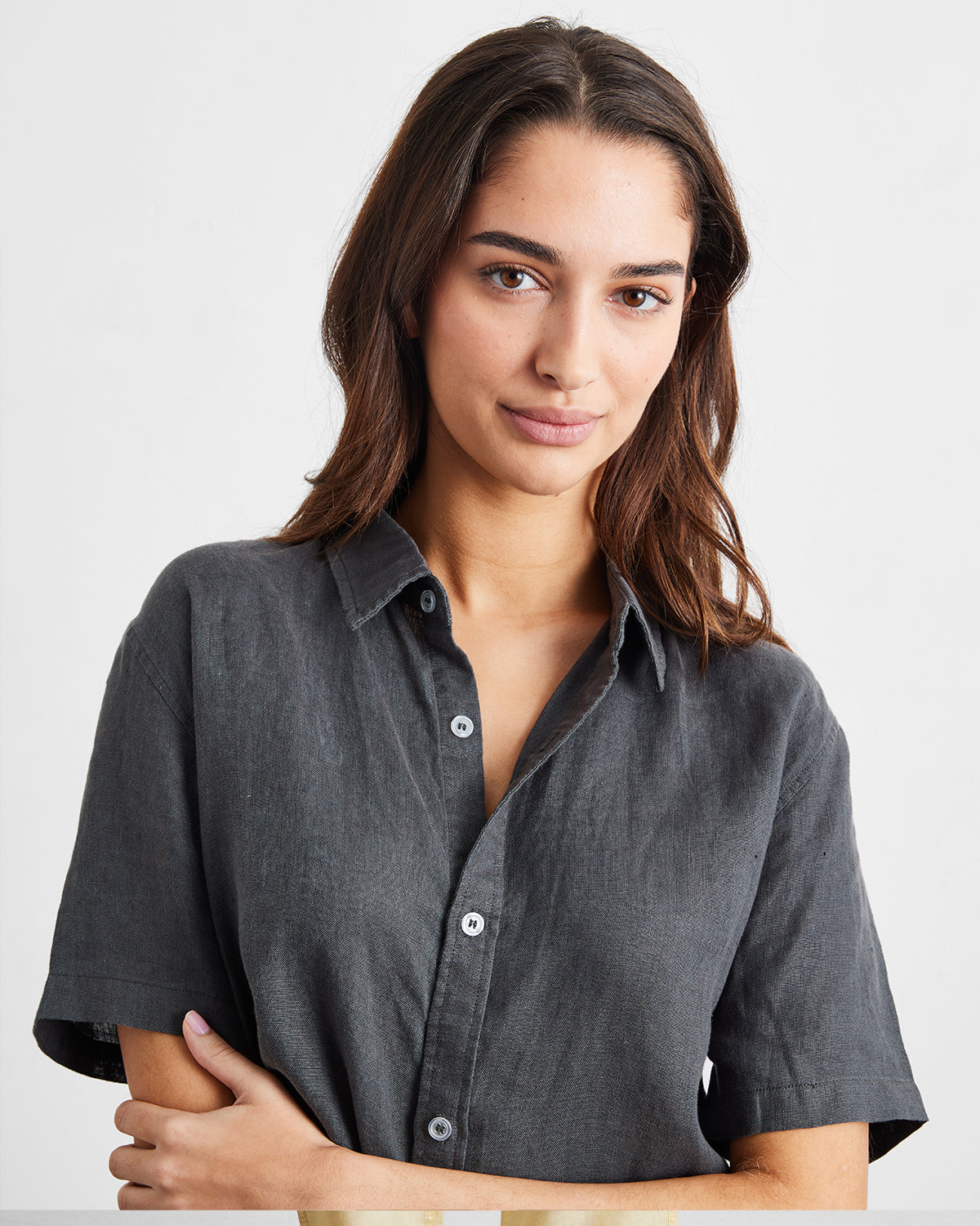 Charcoal 100% French Flax Linen Short Sleeve Shirt