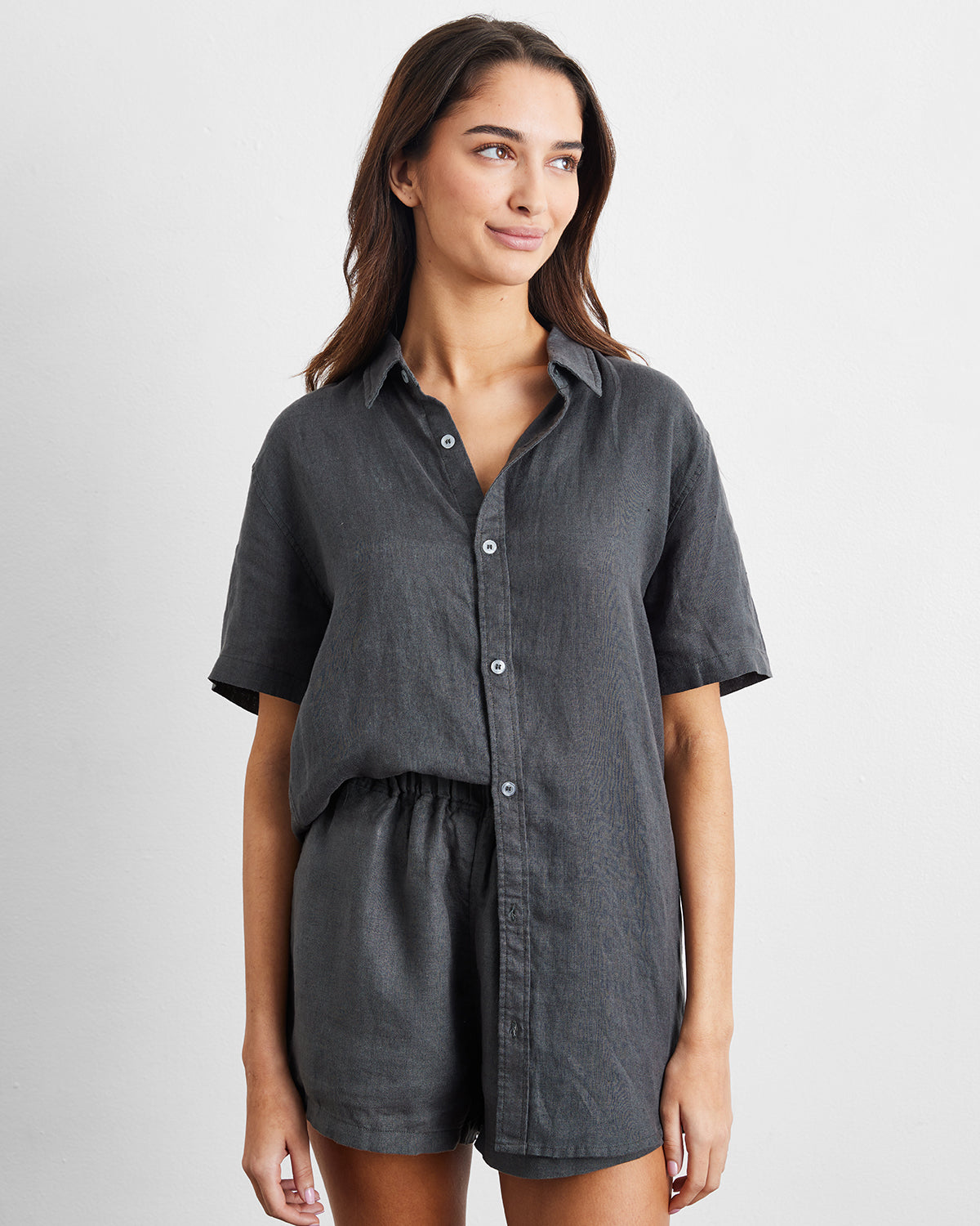 Tags: 50% Off, BC:Last Chance, clearance:50, flag:50% Off, GMC_Band3, Short Sleeve Shirt, sleepwear, Sleepwear_PDP_Stories, upsell-1-charcoal-linen-bedding-set, upsell-2-charcoal-100-flax-linen-pillowcases-set-of-two, upsell-3-100-french-flax-linen-robe-in-charcoal