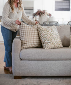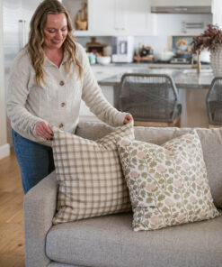 This tan plaid thick weave pillow goes with anything and everything. It’s classic design is the perfect addition to any stripe or floral.Â