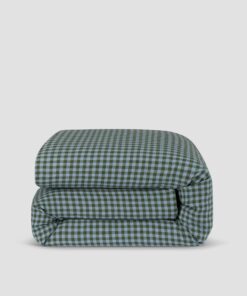 A cozy combination of Fern Green and Dusk Blue gives this Color Drenched Gingham linen blend duvet cover its laid-back. layered charm. Made from only the highest-quality fibers. the breathable fabric combines the effortless look of linen with the softness of cotton. Our linen blend duvet covers are finished with coconut shell button fastenings and feature handy inside corner ties to stop your duvet from slipping.Â