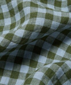A cozy combination of Fern Green and Dusk Blue gives this Color Drenched Gingham linen blend fitted sheet its laid-back. layered charm. Made from only the highest-quality fibers. the breathable fabric combines the effortless look of linen with the softness of cotton. Our fitted sheets have elasticated edges all the way around and fit mattresses up to 16 inches deep.Â