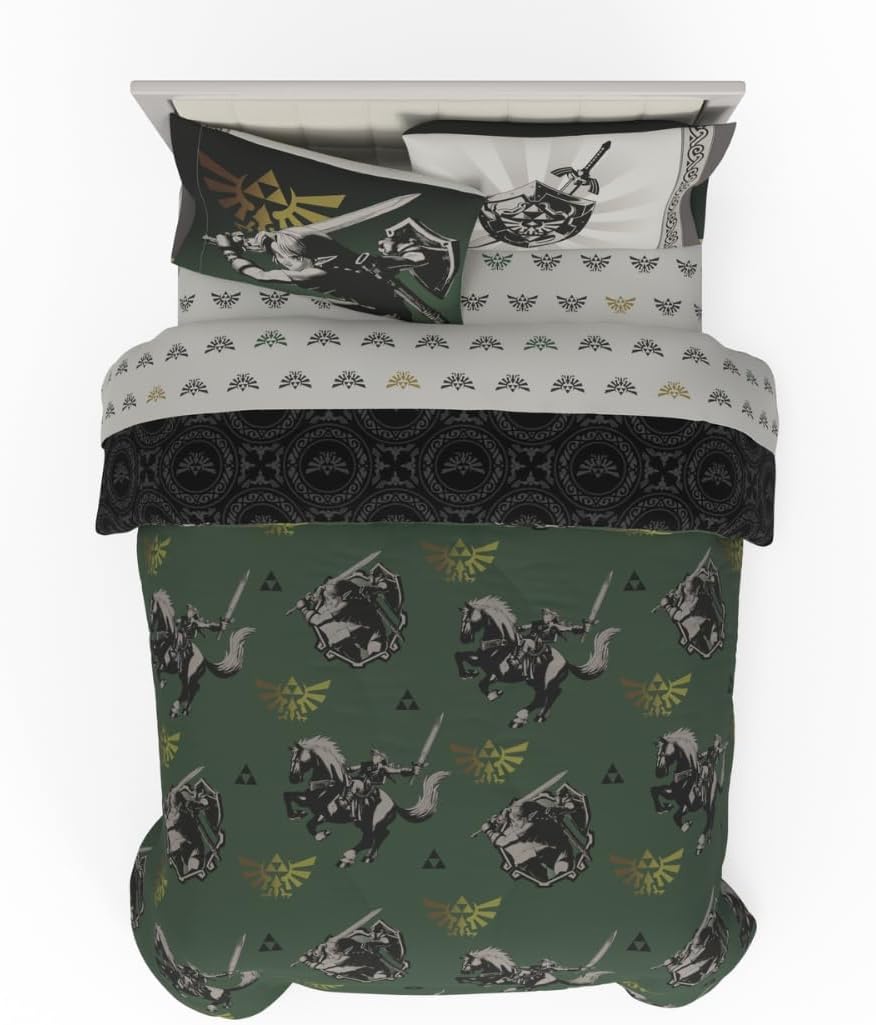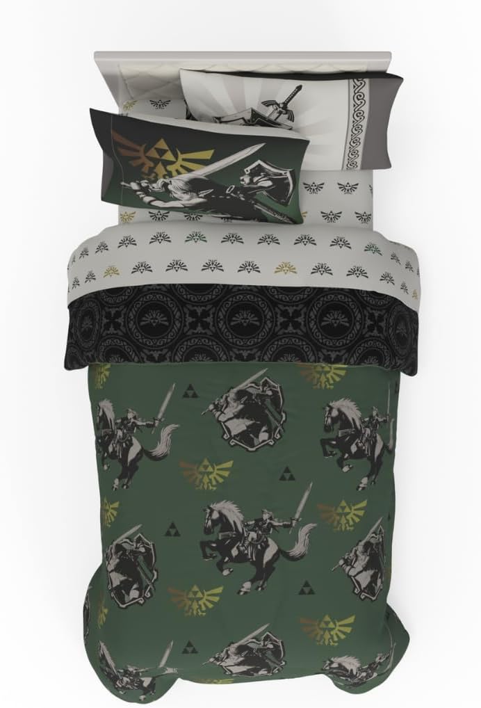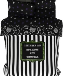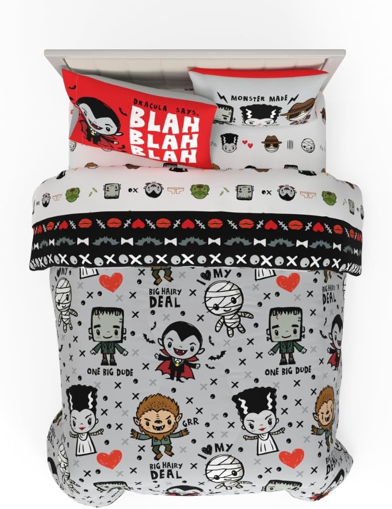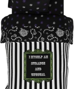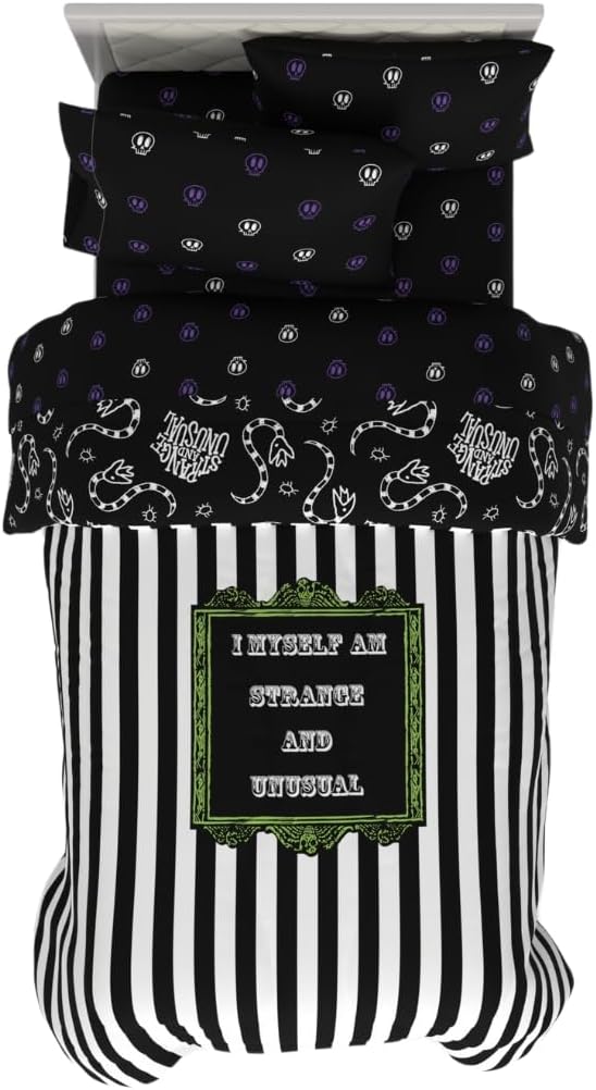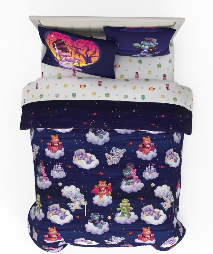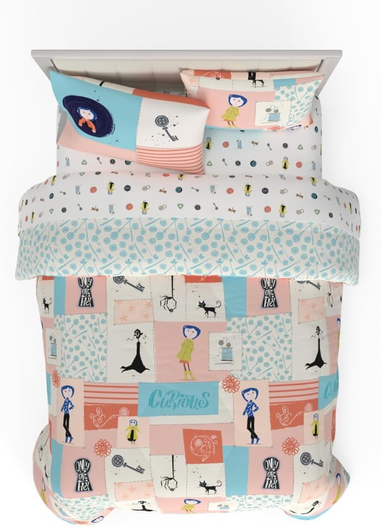Drift into a world of sweet and sassy dreams with this My Melody and Kuromi Bed Set! One side of the comforter features Kuromi striking playful poses on a bold black background, while the reverse showcases My Melody surrounded by hearts on a soft pink backdrop. Whether you’re feeling mischievous or totally kawaii, this reversible design lets you change the vibe whenever you want. The coordinating sheets add extra charm with an allover print of My Melody and Kuromi in pastel tones. Made from super soft, cozy microfiber, this set includes a comforter, fitted sheet, flat sheet, and pillowcase(s) and comes in sizes twin through full. It’s the ultimate combo of comfort and Sanrio style, perfect for fans of all ages. Easy to care for and machine washable, this officially licensed bedding brings a splash of cuteness and comfort to your room. Snuggle up, show off your favorite characters, and turn bedtime into a magical Sanrio moment!