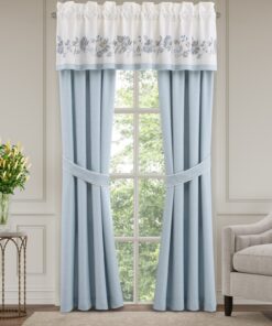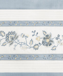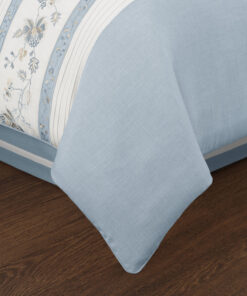 The Garden Bloom 4 Piece Comforter Set offers a fresh Farmhouse look with a beautiful floral embroidery in neutral colors on top of a linen textured chambray blue fabric. Bordered with pleated bands of ivory. this collection creates a peaceful retreat feeling. The comforters are generously oversized and overfilled and the matching embroidered pillow shams feature a hidden zipper closure. The coordinate textured bedskirt is constructed with tailored split corners 15 inches in depth. Coordinate Garden Bloom accent pillows. shams. and window treatments by J. Queen New York are available separately.
