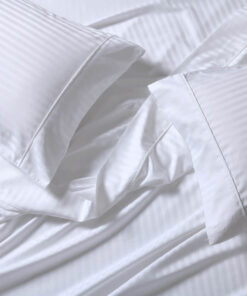 Rest comfortably with our medium to heavyweight Pure 100% Cotton Sateen Sheet Sets. Choose between classic Solid Sateen OR Damask Stripe designs. Comes with a 16 Deep Fitted Sheet. which fits up to 18 mattresses plus extra corner straps to securely hold it in place. Featuring labels for the Short/Long sides to easily identify width from length.