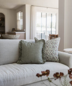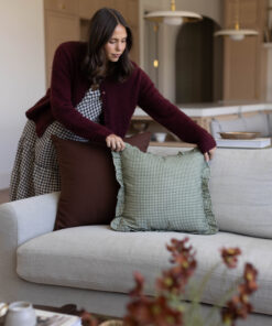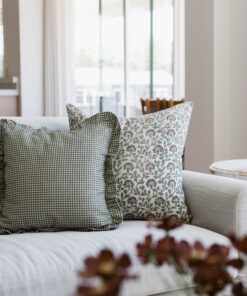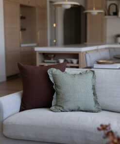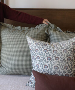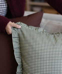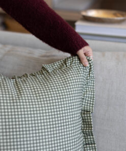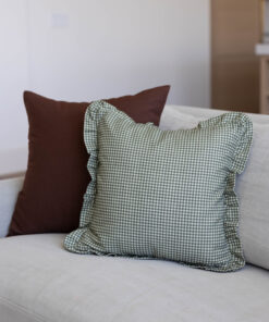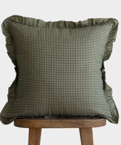 The green mini gingham ruffle brings a cozy. timeless feel with its classic green check pattern and soft ruffled edge. Perfect for layering with florals. stripes. or solids. it adds an inviting cottage-inspired touch to your sofa. bed. or favorite chair.
