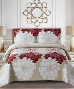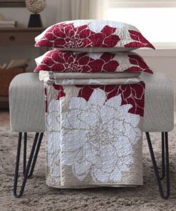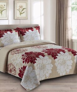 Find yourself falling for our Helena Burgundy Quilt Set. with hints of rich burgundy over warm and inviting beige. creating an alluring bedroom space that speaks in comfort. It features eye-catching poinsettia-esque floral arrangements on a neutral beige background. This bedspread set is fully reversible and crafted from soft 100% microfiber. it is easy to care for and machine washable.