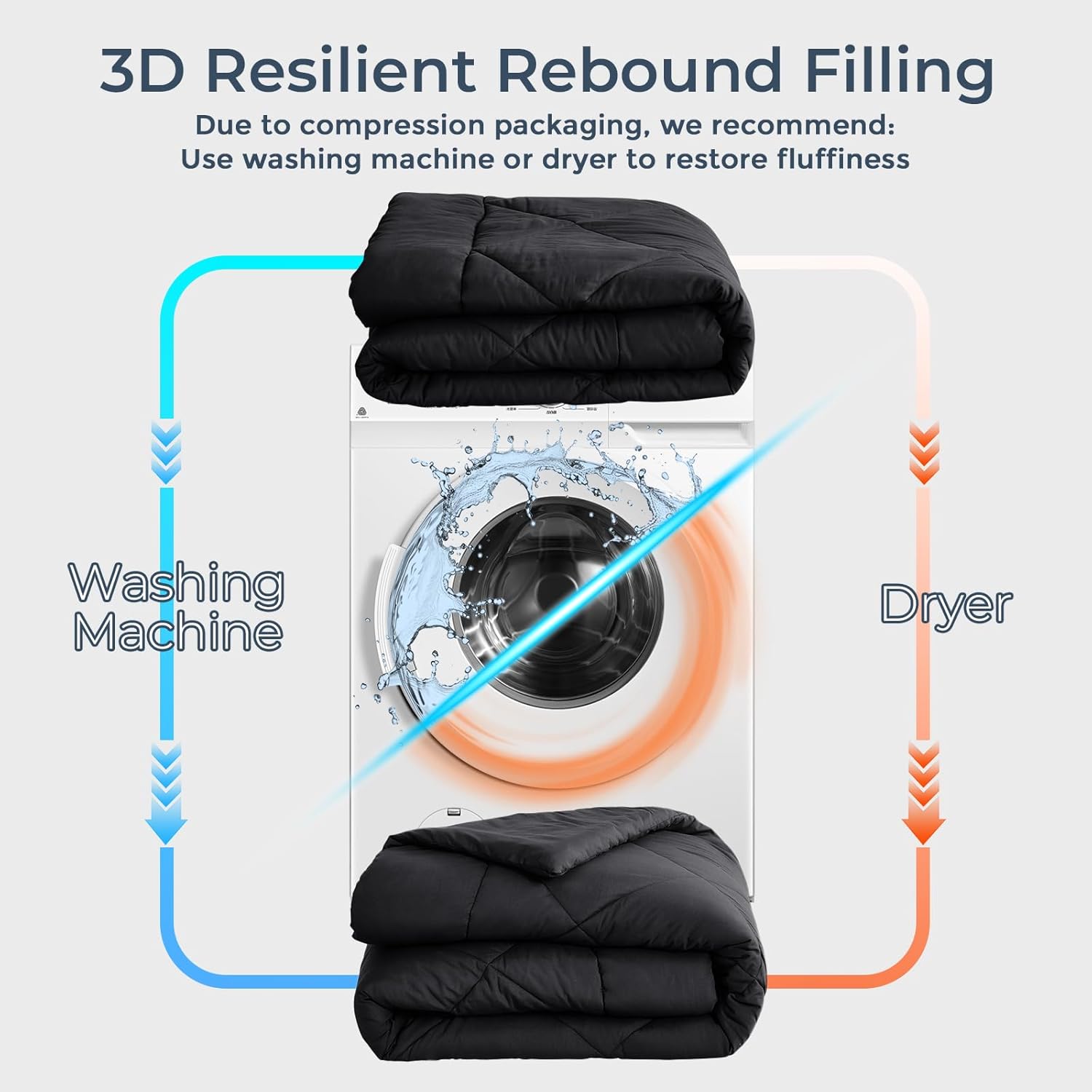 HEVUMYI Black Queen Comforter Set – 7-Piece All Season Bed in a Bag Queen, Ultra Soft Bedding Set with Comforter, Flat Sheet, Fitted Sheet, Pillowcases, Pillow Shams, Black