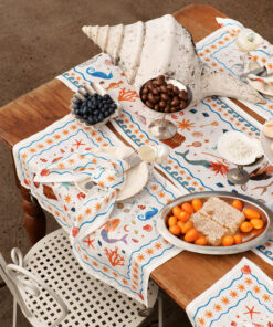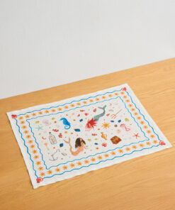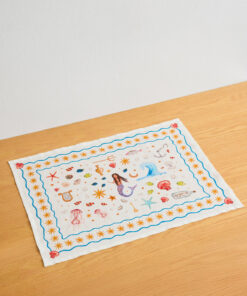 Channel the joy and tranquility of the sea no matter how far from the shoreline you are with our La Sirène Placemats. Immerse yourself in the whimsy of artist Brigitte Grant’s imaginative underwater scene. complete with marine life. myths and treasures from the deep. These limited-edition placements are an ode to the golden glow of days spent in the sunshine. Place them on top of their matching tablecloth for a layered moment. pair with the La Sirène Table Runner. or simply style with a plain Bed Threads tablecloth for a contrasting finish.