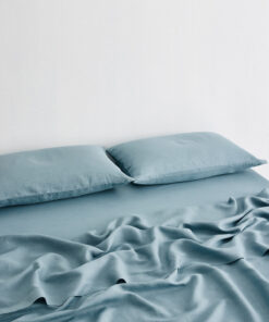 Ultra soft and incredibly durable. our 100% French flax linen fitted sheet in Lagoon is the foundation for a beautifully made bed. With a generous fit that snugly hugs every corner. this modern heirloom is made to keep.