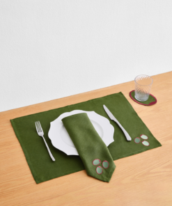 Featuring a tablecloth in Olive. a set of four Les Fruits Olive Placemats. a set of four Les Fruits Olive Napkins and a set of four Les Fruits Olive Coasters. this curated set makes setting the table simple–and anything you serve on it a showstopper. What’s more. every table bundle comes with an in-built 10% discount.