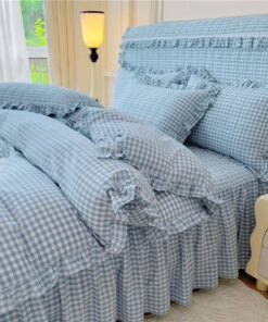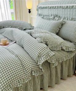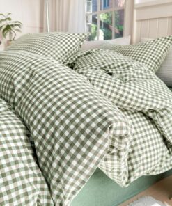 The farmhouse gingham bedding comforter set is durable and easy to maintain. Machine wash in cold water on gentle cycle with similar colors. Do not bleach. Tumble dry low.
