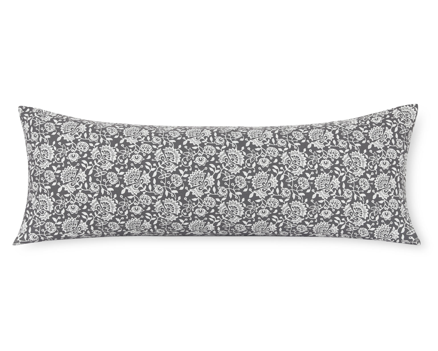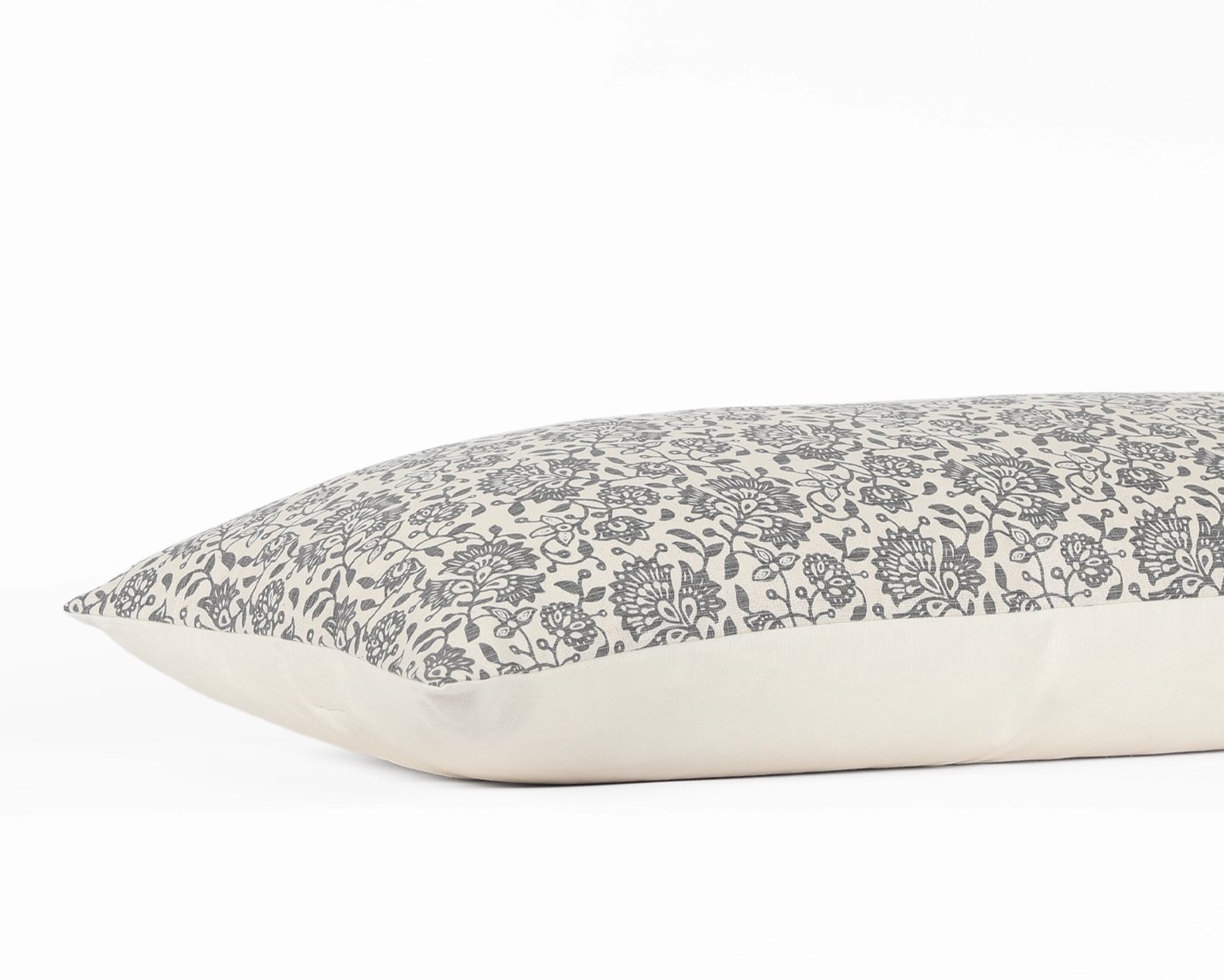 Lille in Graphite. Floral Print Cotton Pillow Cover.