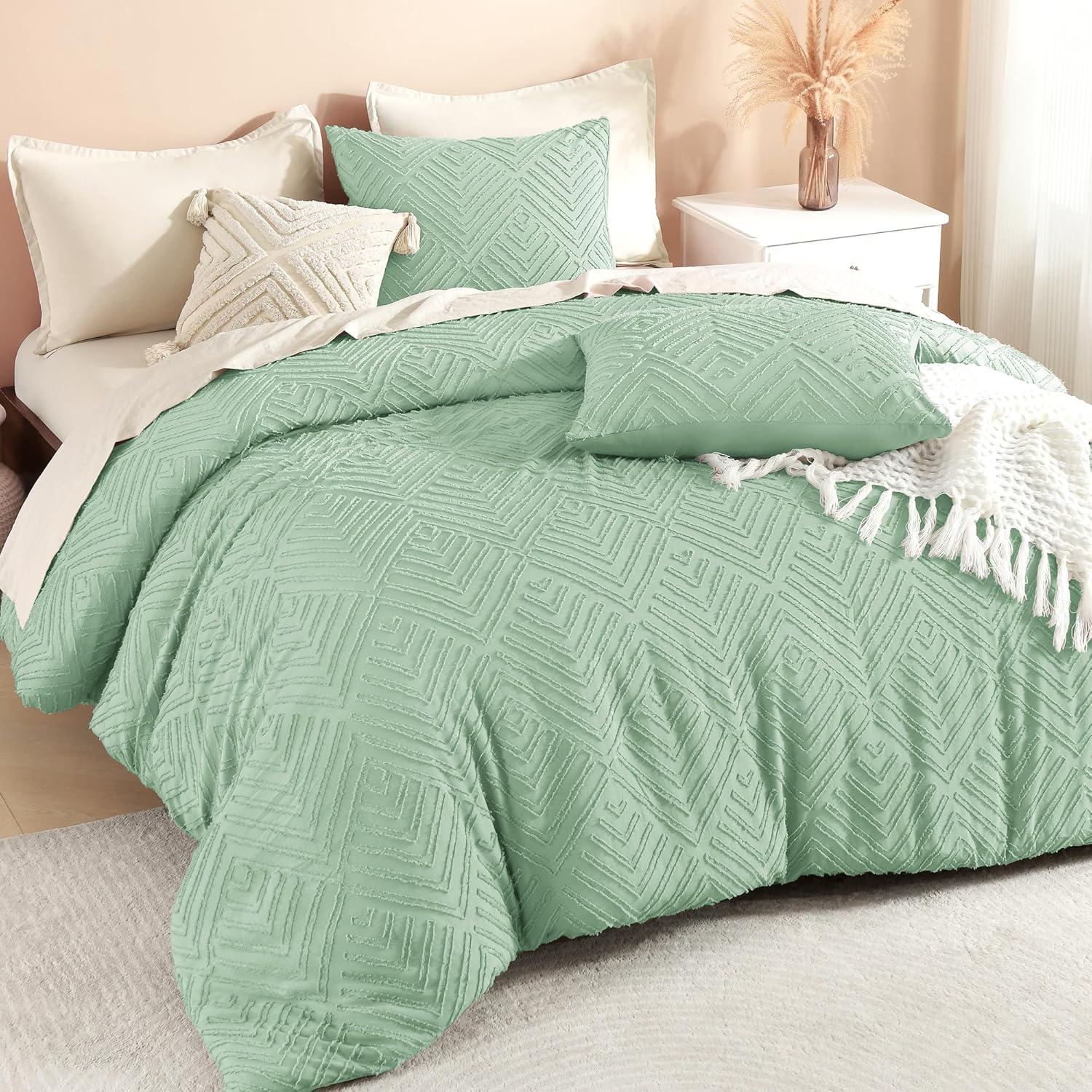 Litanika King Size Comforter Set Beige, 3 Pieces Cream Tufted Boho Farmhouse Bedding Comforter Sets, Lightweight Fluffy Comforter Bed Set for All Season (104x90In Comforter and 2 Pillowcases)