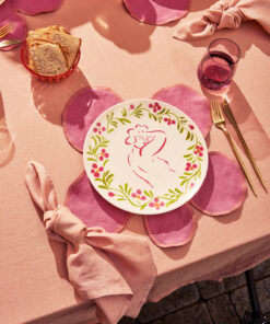 Perfect for garden parties. spring soirées and everything in between. this Liv & Dom dinner plate is one for lovers of classic ceramics. A timeless color palette of soft pinks. greens. and honeyed yellows lend Pink Anemone a dreamy aesthetic. while a minimalistic nude adds a modern edge. Vintage-inspired and crafted for contemporary use. this gorgeous plate is one you’ll use time and time again.