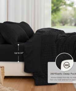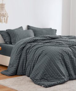 Love’s cabin Black Seersucker Comforter Set 5/7 Pieces Bed In A Bag