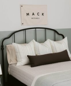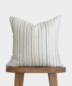 The Mack pillow cover is an abstract stripe that blends traditional with contemporary. Designed with an off white base and different shades of blue stripes. this pillow is perfect for a little boys room or living room