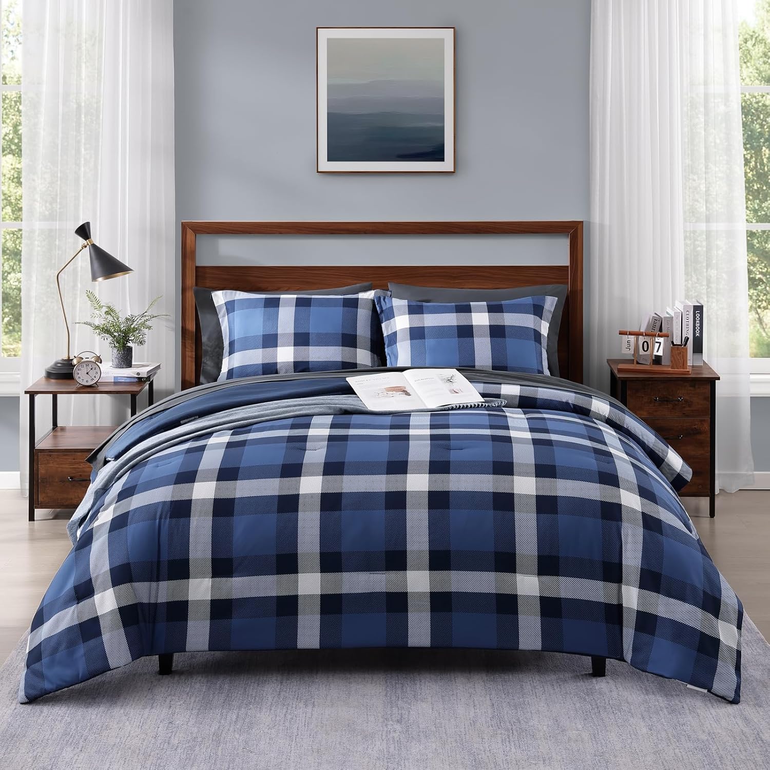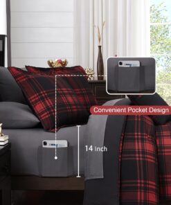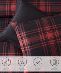 SKU: 10185500295443-maireve-full-size-comforter-sets-red-black-plaid-comforter-set-7-pieces-all-season-bedding-sets-full-festival-bedding-warm-and-breathable-80-90red-full Category:
