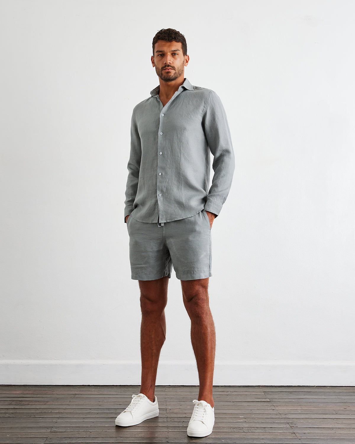 For buttoned-up style that’s still effortlessly relaxed. our Men’s Long Sleeve Shirts make any outfit feel instantly complete. Featuring a slim fit that sits comfortably along the body. sleek collar detail and buttons to style open or closed. this leisurewear staple will fast become part of your weekly wardrobe rotation. Pair with our pure linen Men’s Shorts in a matching hue for a coordinated set. or style it in all seasons with your favorite denim or trousers.