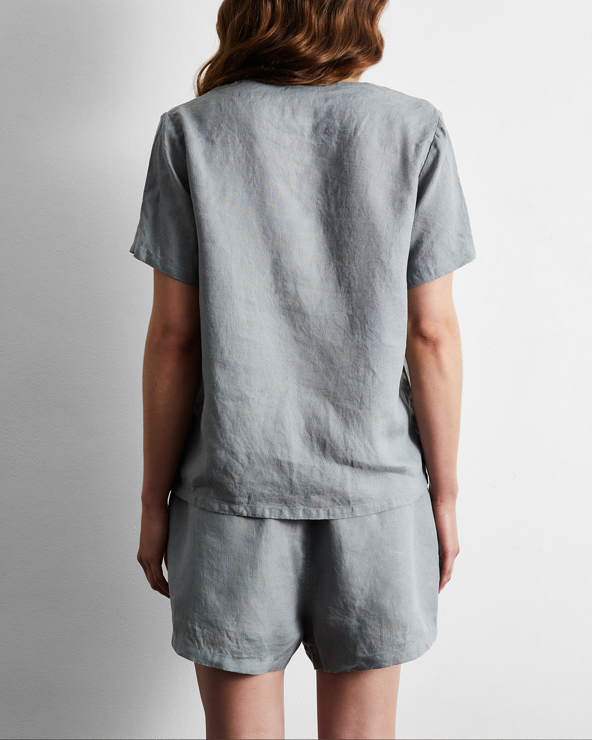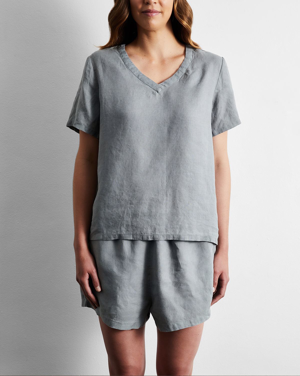 This T-Shirt is easy like Sunday morning. Designed for maximum comfort and made from our extra-soft 100% French flax linen. it’s made for lazy weekends in bed. The chic v-neckline gives this style a little polish. while the cap sleeves are just the right length for warmer nights. Both quick-drying and moisture-wicking. this T-Shirt will have even the hottest sleepers keeping their cool. Pair with our matching Shorts for bedtime bliss. or toss it on top of daywear denim. It doesn’t get more relaxed than this.
