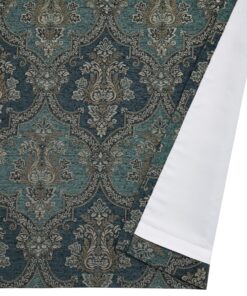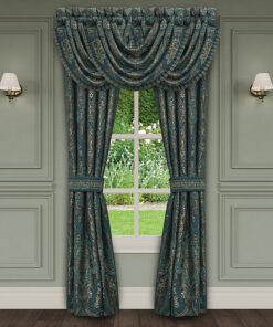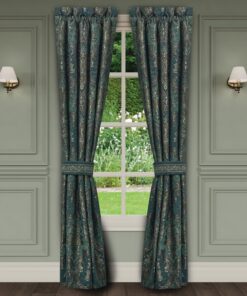 The Nancy Window Panel Pair showcases a highly detailed woven damask design in a stunning teal. green. and gold colorway. Each panel is lined to keep your room shaded and comfortable and the weighted hems allow the panels to drape beautifully. The luxurious panels include matching tiebacks to complete the fresh open airy look. Pair these panels with the Nancy Window Valance and Bedding collection to complete your bedroom decor.