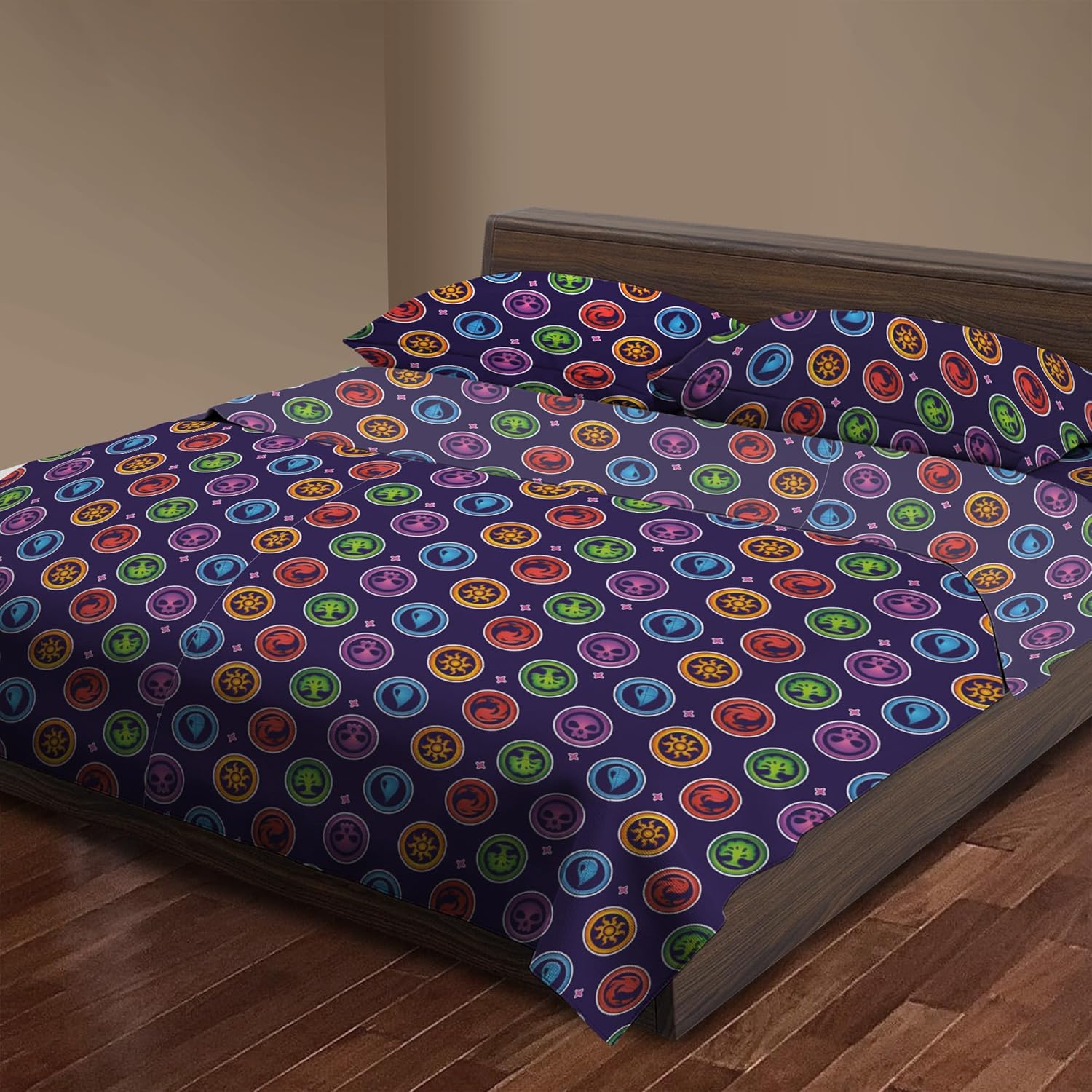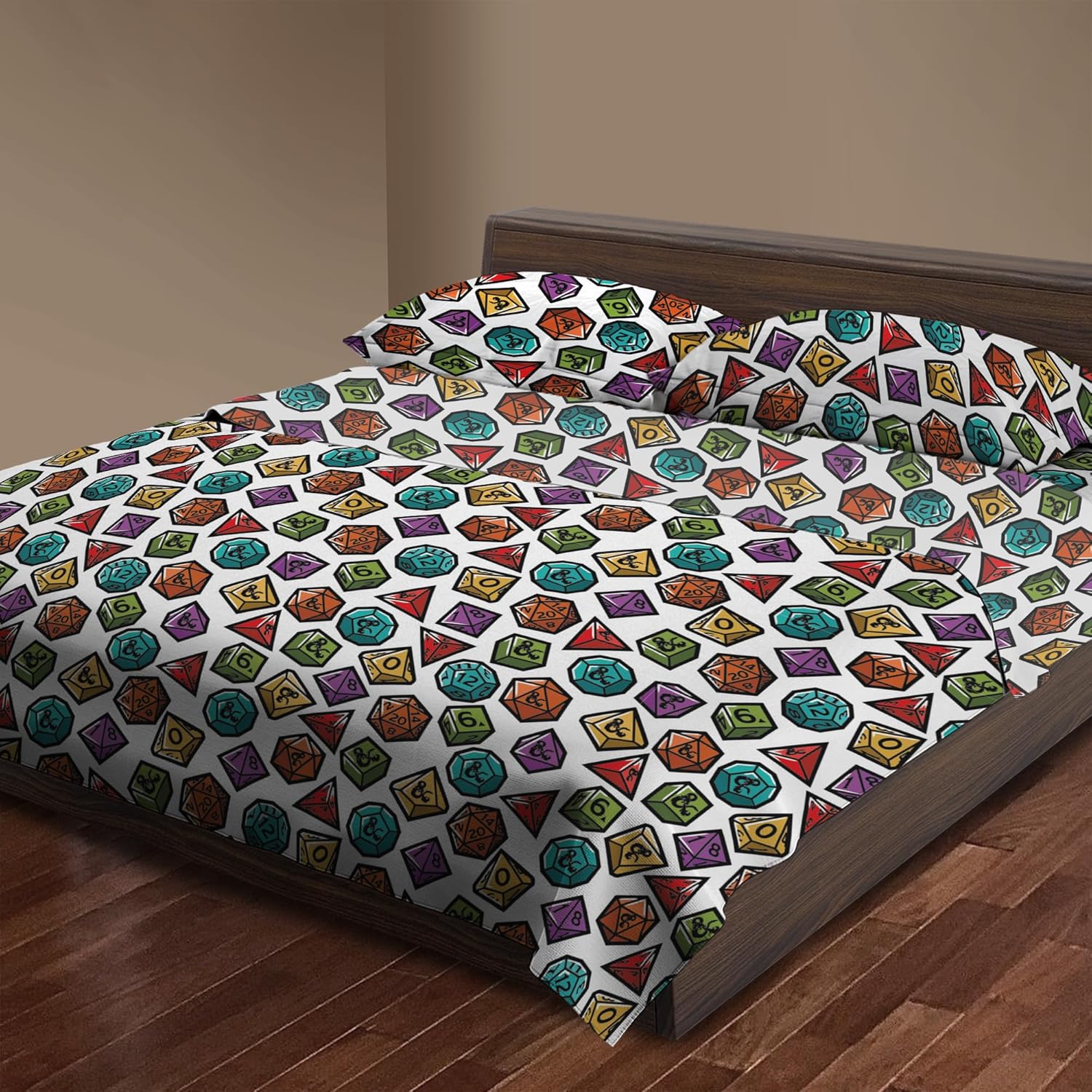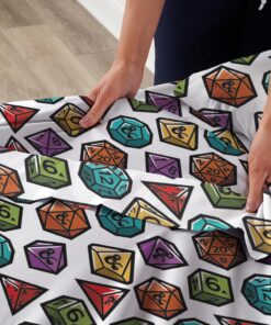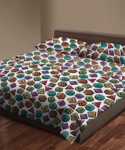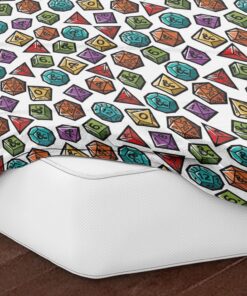 Bring bold energy and tabletop flair to your bedroom with the Dungeons & Dragons “Roll the Dice” Full Bed in a Bag Set. This dynamic bedding set features an all-over pattern of colorful polyhedral dice set on a crisp white background, the eye-catching print adds a pop of color and excitement to any gaming lair. Designed for both comfort and creativity, the set includes everything needed for a complete bedding refresh: a cozy comforter, flat sheet, fitted sheet, and pillowcases each made from soft, breathable fabric to keep you comfortable whether you’re up late dungeon crawling or rolling initiative in your dreams. The fitted sheet hugs your mattress snugly, while the comforter brings warmth and a heroic touch to your bed setup. Perfect for D&D fans of all ages, the “Roll the Dice” bed set transforms any bedroom into a fantasy-themed haven.