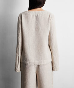 Easy. breezy and comfortably oversized. our 100% French Flax Linen Top is the pyjama shirt of your dreams. The billowing bell sleeves and deep v-neckline are a nod to the ’70s. while the loose silhouette and buttery soft fabrication is made for relaxed days spent in or out of the house. Pair with our 100% French Flax Linen Pants for the ultimate co-ordinated two-piece look. or style it on its own with the bottoms of your choice—trust us when we say this sartorial multi-tasker will be one of the hardest working pieces in your wardrobe.