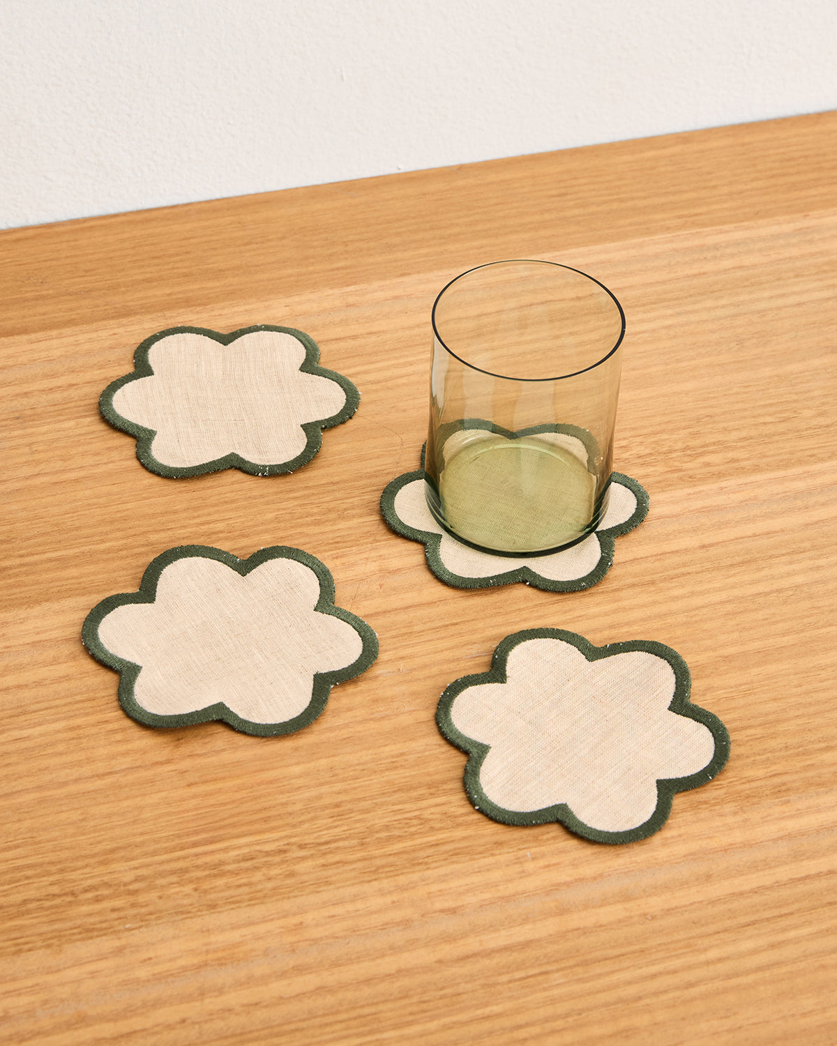 Oatmeal & Olive 100% French Flax Linen Petal Coasters (Set of Four)
