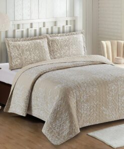 Beautiful and simplistic. adorned with rows of natural leafy branches that trail upwards along the seams of the quilt. The Odette bed quilt or reversible bedspread set is made of 100% Microfiber which is easy to care for and machine washable.