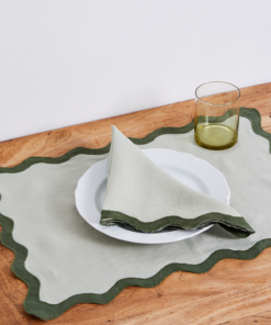 A medley of lush greens. the Olive & Sage Table Bundle is the perfect backdrop for your most decadent dishes. Featuring a tablecloth in Olive. a set of four Scalloped Placemats in Sage & Olive and a set of four Scalloped Napkins in Sage & Olive. this curated set makes setting the table simple–and anything you serve on it a showstopper. What’s more. every table bundle comes with an in-built 10% discount.