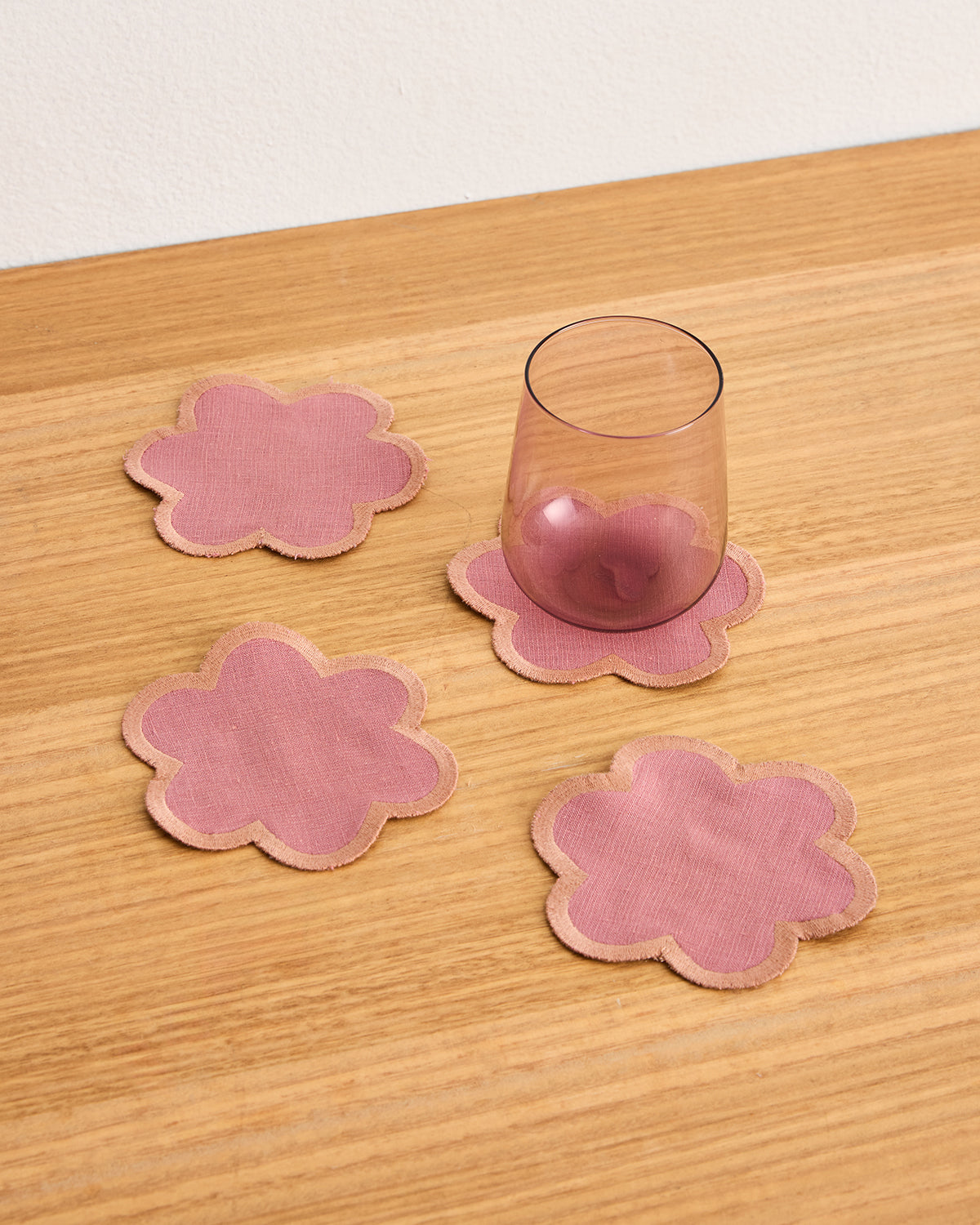 Pink Clay & Hazelnut 100% French Flax Linen Petal Coasters (Set of Four)