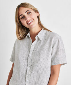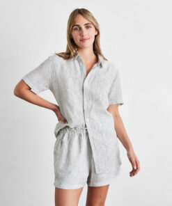 Meet your new loungewear must-have. Our 100% French Flax Linen Short Sleeve Shirt is just about the most comfortable way to spend your nights (and days). Featuring a relaxed fit and extended length that looks stylish tucked in or out. this effortlessly chic shirt will keep you cool under the covers thanks to its moisture-wicking fabrication and wide-fitting sleeves. Pair with our Linen Shorts for the ultimate summer set. or team this versatile essential with your favourite wardrobe staples.